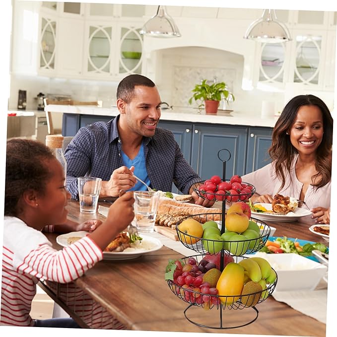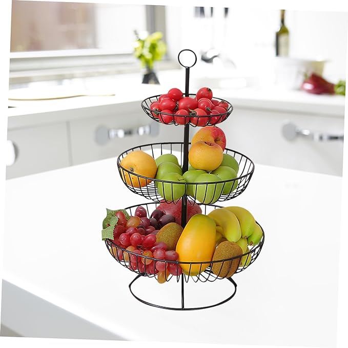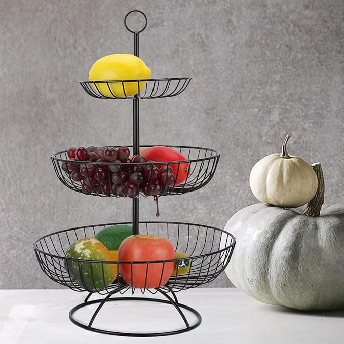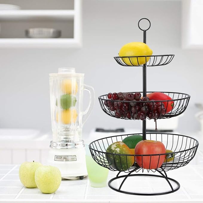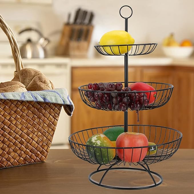 Com três andares espaçosos, esta cesta oferece amplo espaço para organizar uma variedade de frutas, desde maçãs e bananas até laranjas e peras.