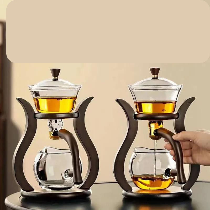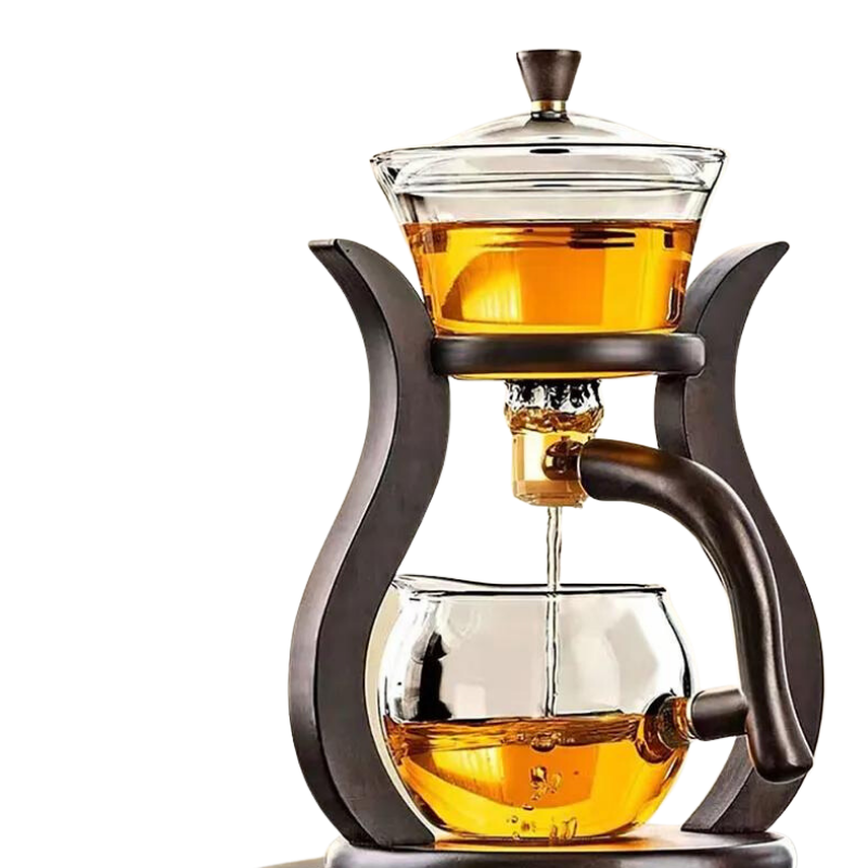 O nosso Conjunto de Chá de Vidro Rotativo Automático, é o companheiro perfeito para os amantes de chá que buscam uma experiência única.