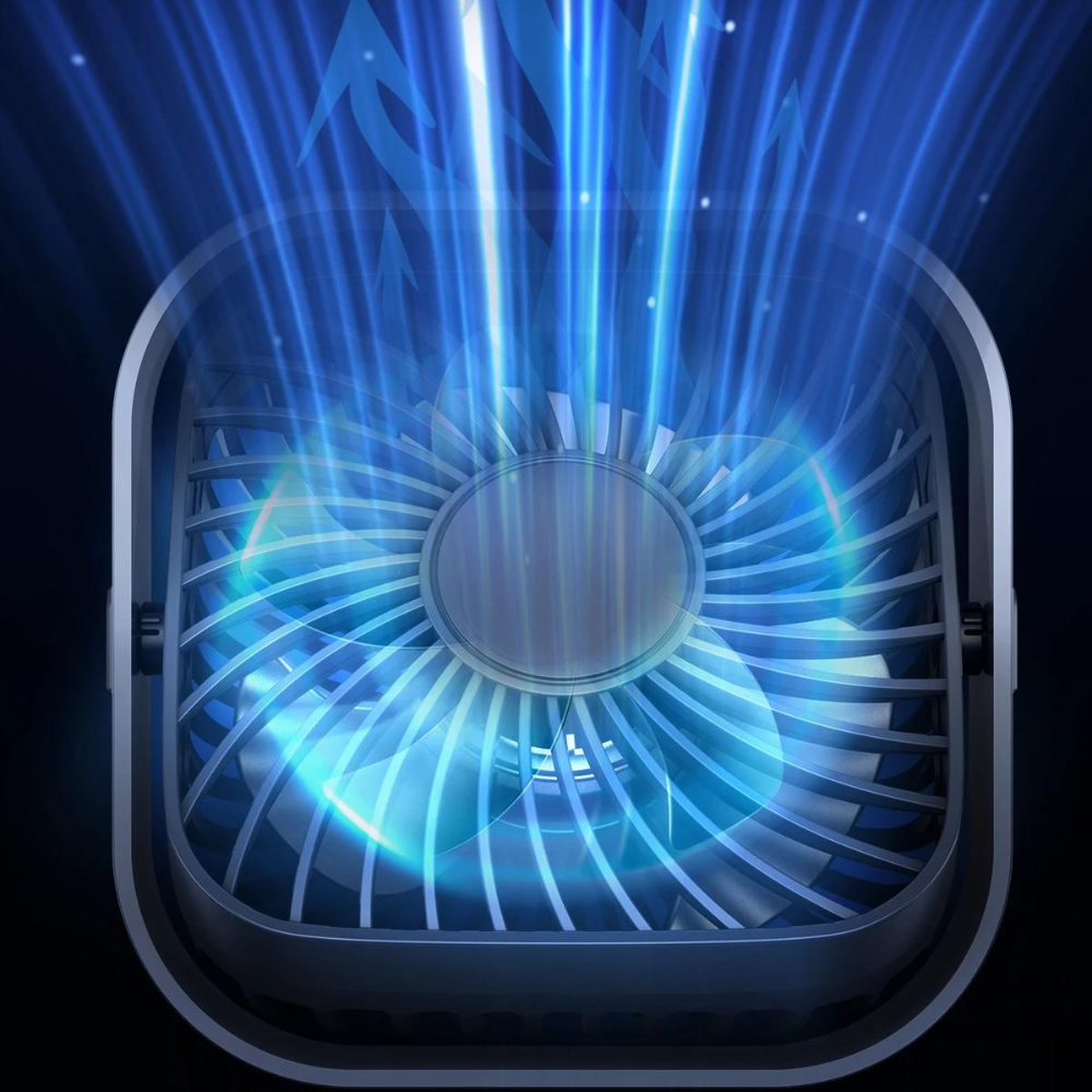 Com uma capacidade de rotação vertical de 360°, este mini ventilador oferece uma ventilação eficiente em todas as direções.