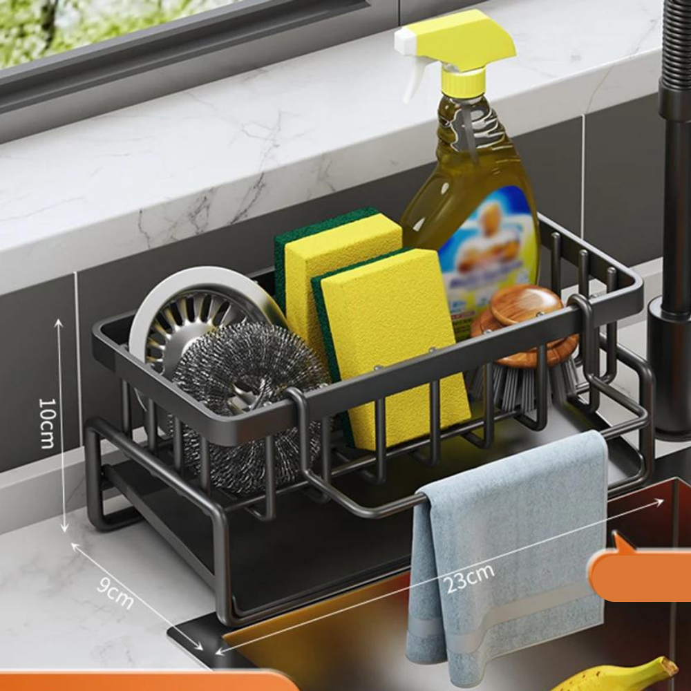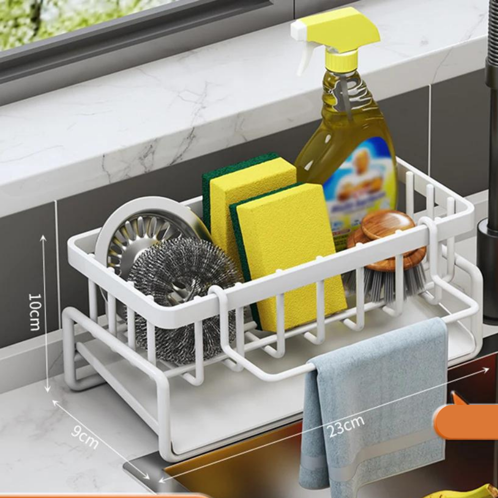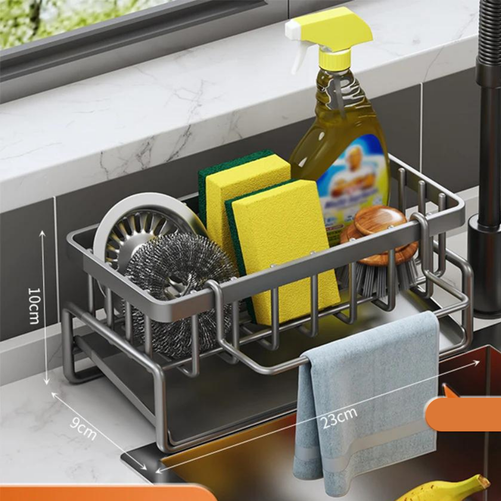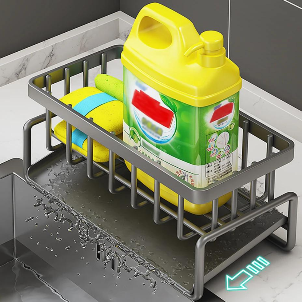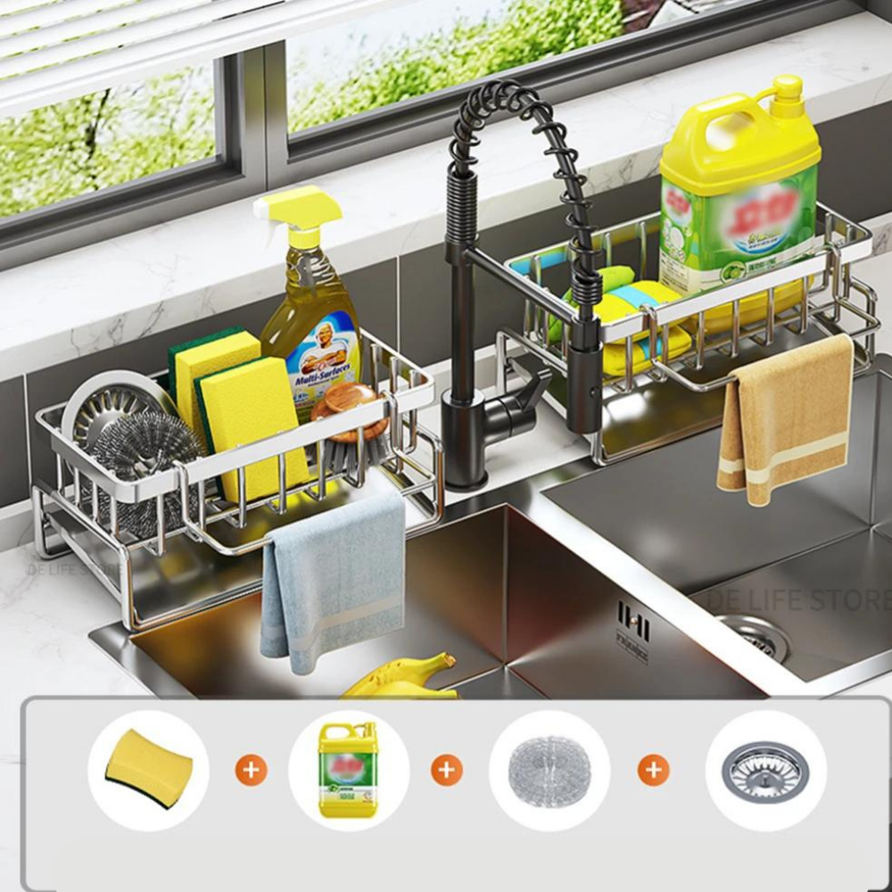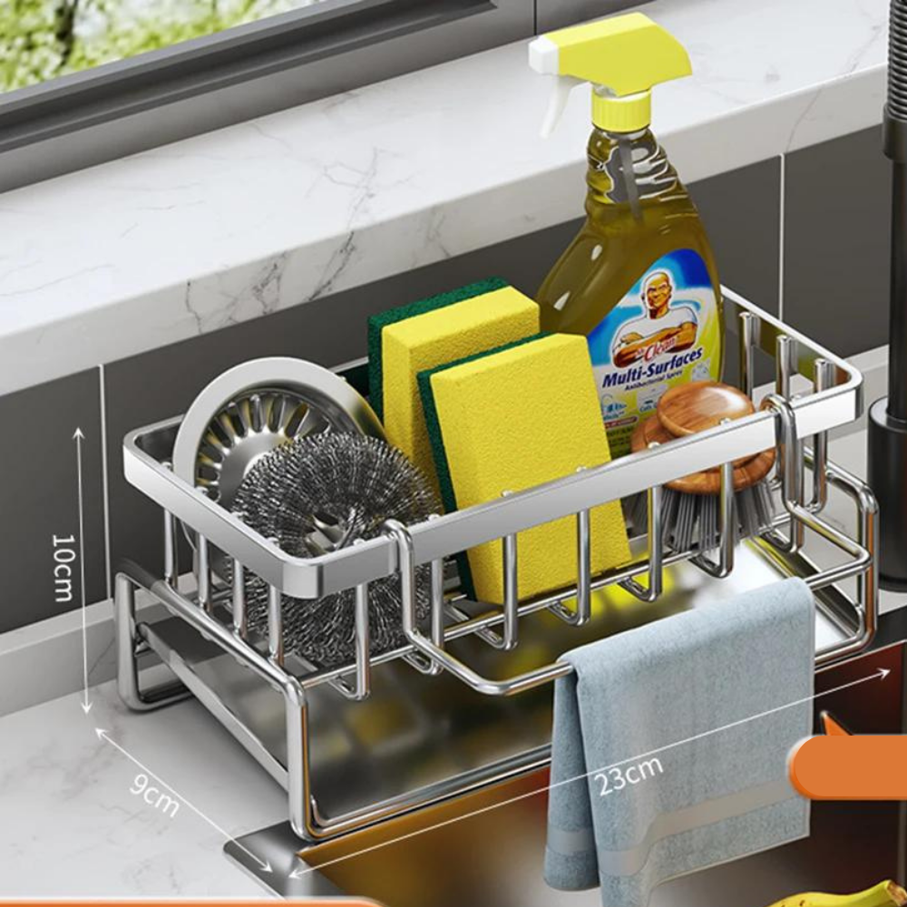 Mantenha a sua cozinha organizada e eficiente com o Organizador de Pia Auto-Drenante em Aço Inoxidável.