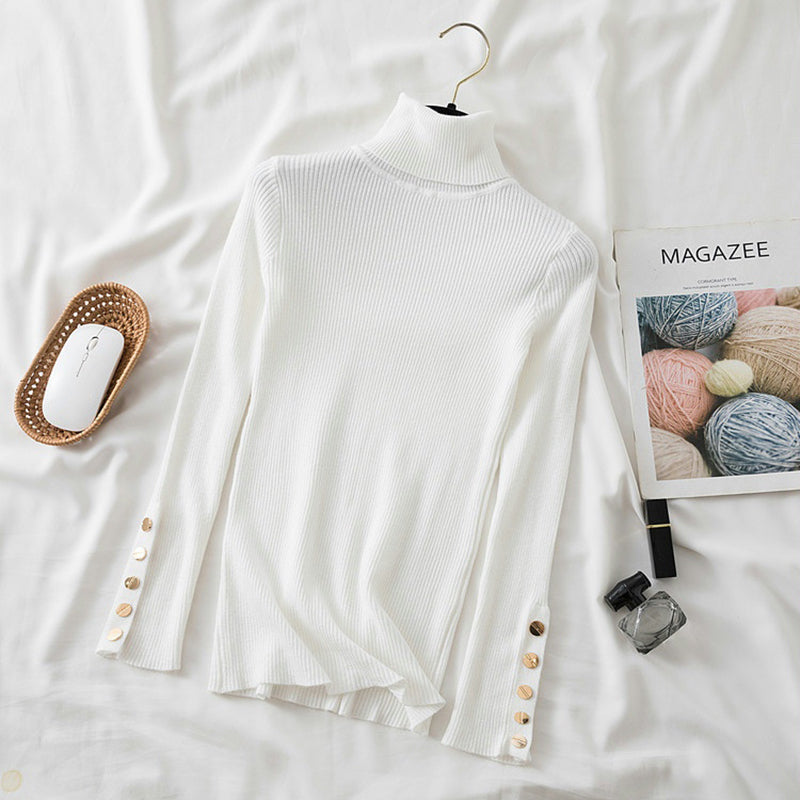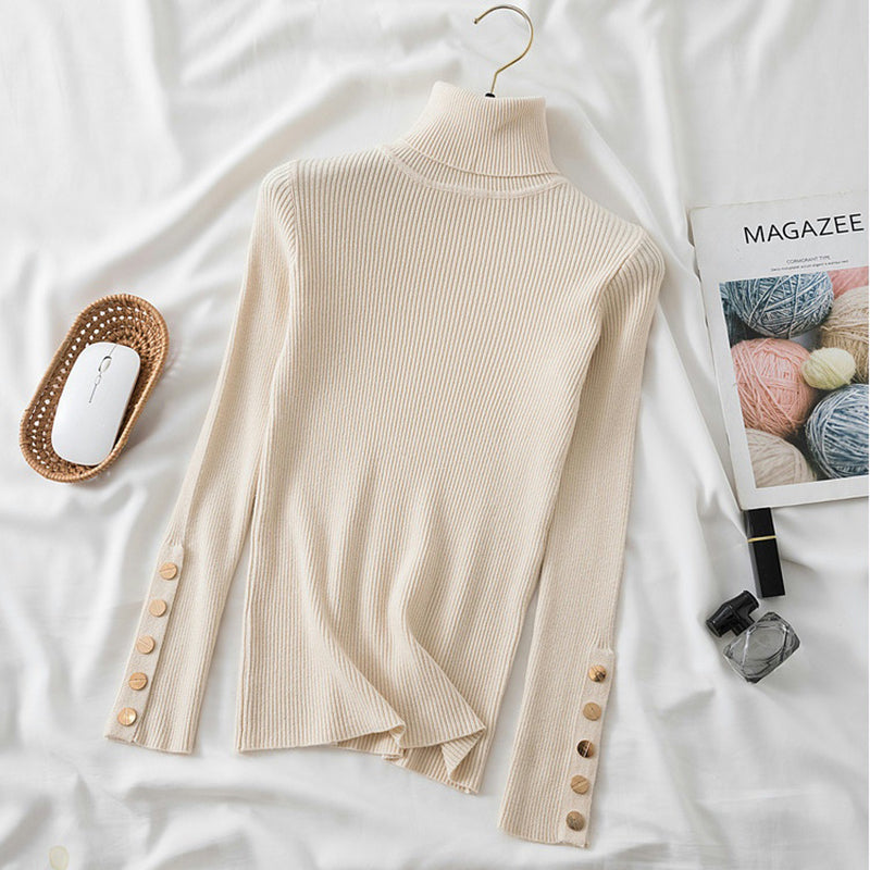 - 1x Suéter Feminino Tricô de Manga Longa com Botões | CozyButton