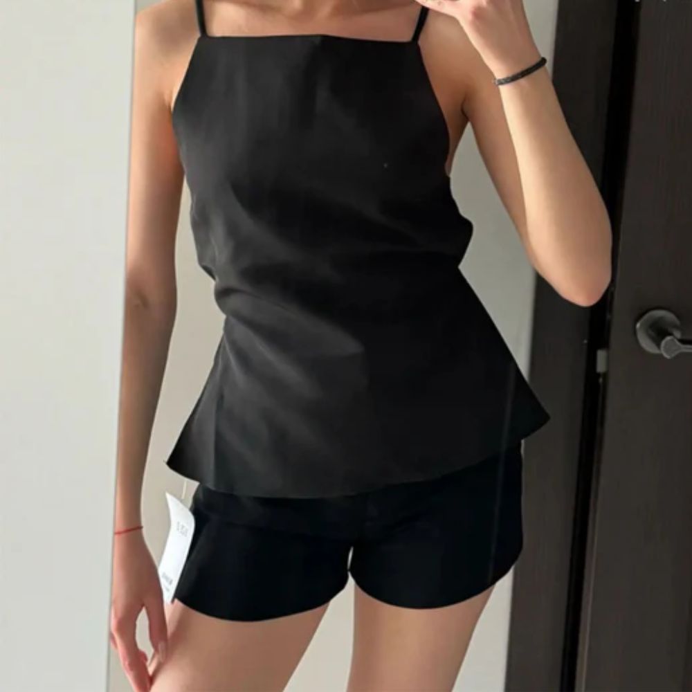 A Regata Feminina Elegante com Costas Nua e Gola Reta é ideal para quem busca um visual marcante com toque de leveza.