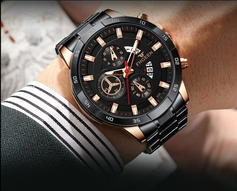 O nosso mais novo Relógio FNGEEN Pro é para quem realmente gosta de impor estilo; mais do que mostrar as horas em seu design moderno, ele é  altamente resistente, revestido com um material de qualidade e um vidro Hardlex resistente à riscos e a choques.