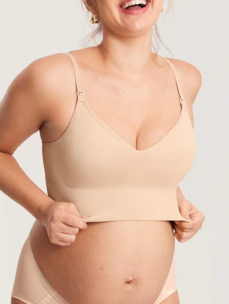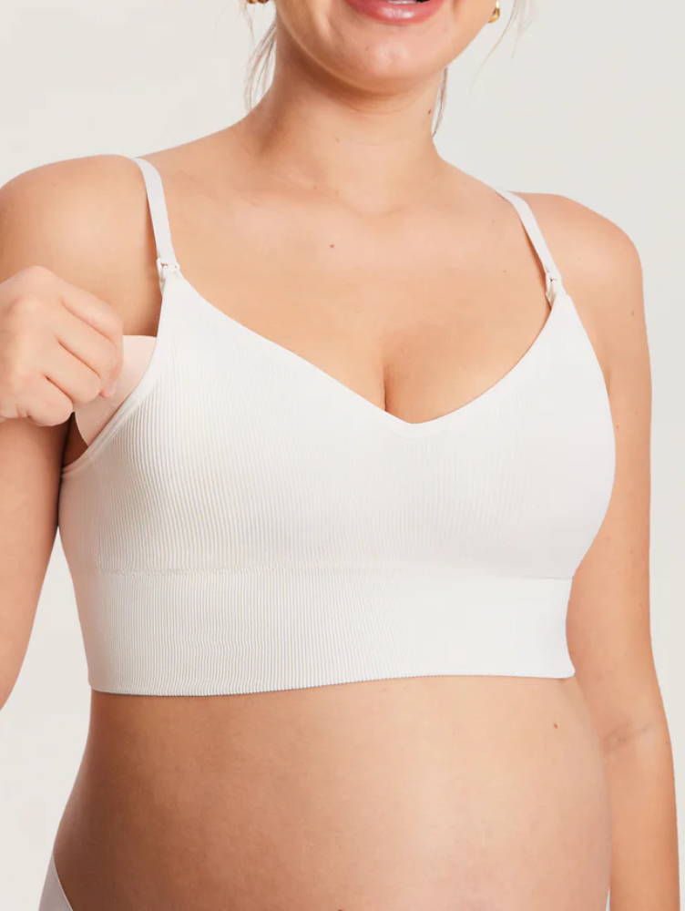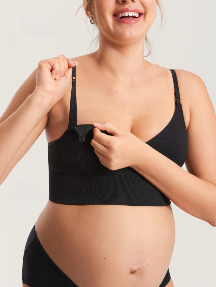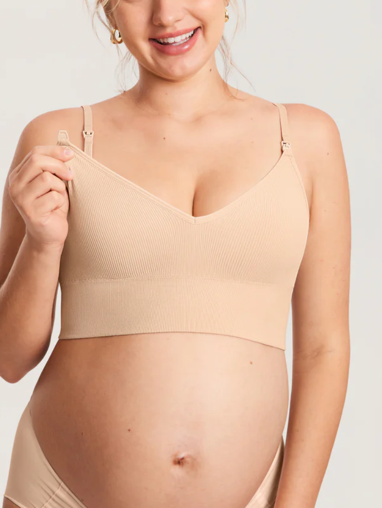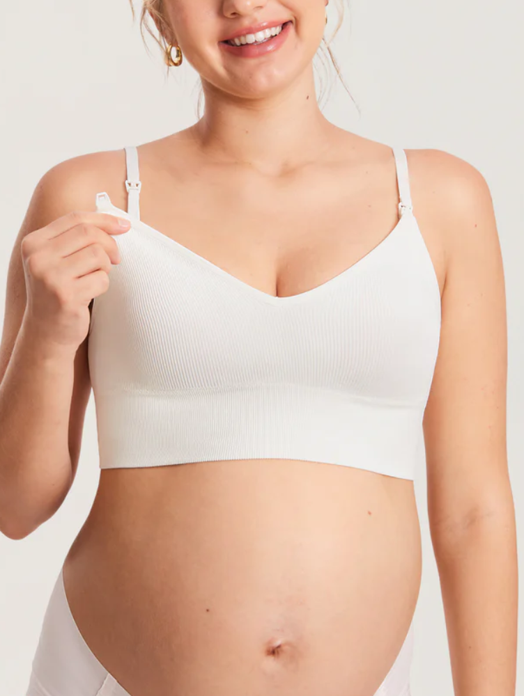Feito com uma mistura luxuosa de materiais macios e elásticos, o Sutiã de Amamentação Canelado oferece o suporte suave que você precisa, com o toque de elegância que você merece.