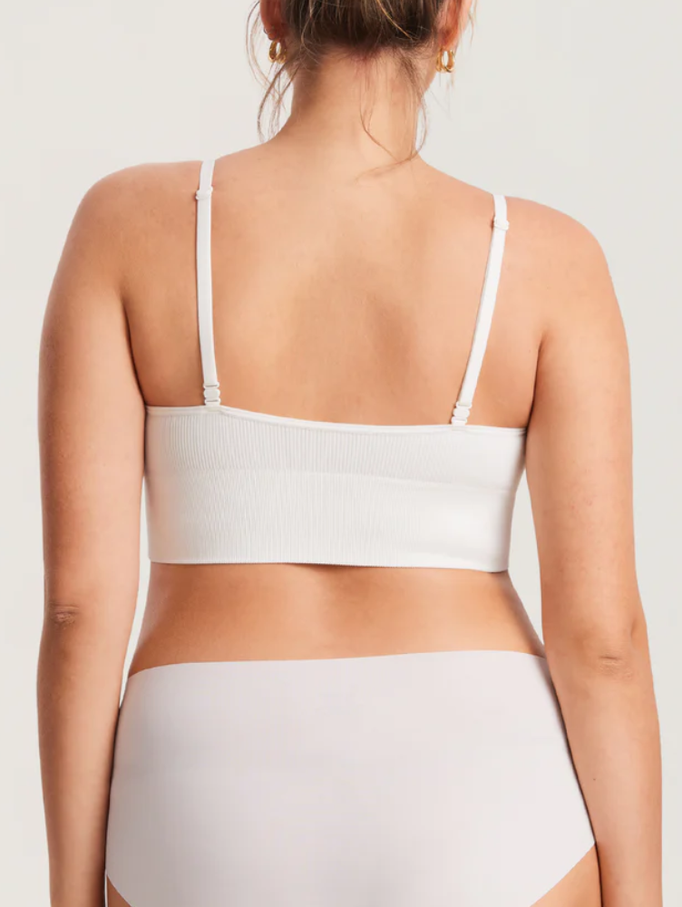 Com um comprimento mais longo que se encaixa perfeitamente sob quase qualquer roupa, ele funciona tanto como sutiã quanto como top cropped.