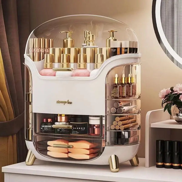Com design moderno e ampla capacidade, ele acomoda facilmente todos os seus itens de maquiagem, pincéis, perfumes e acessórios.