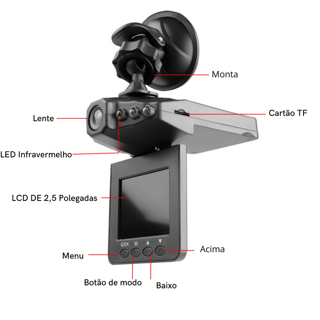 Feito para gravar cada momento que você passa dentro e fora do seu carro. A câmera está equipada com toda a lente transparente de vidro e melhor tecnologia de filtragem, pode efetivamente bloquear a desordem na luz e manter a boa qualidade de imagem, independentemente do dia e da noite