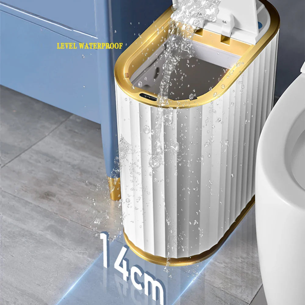 A classificação à prova d'água IPX5 torna esta lixeira ideal para ambientes úmidos, como banheiros e cozinhas. Fabricada com materiais duráveis, como ABS e PP, garante resistência contra água e gotejamentos.